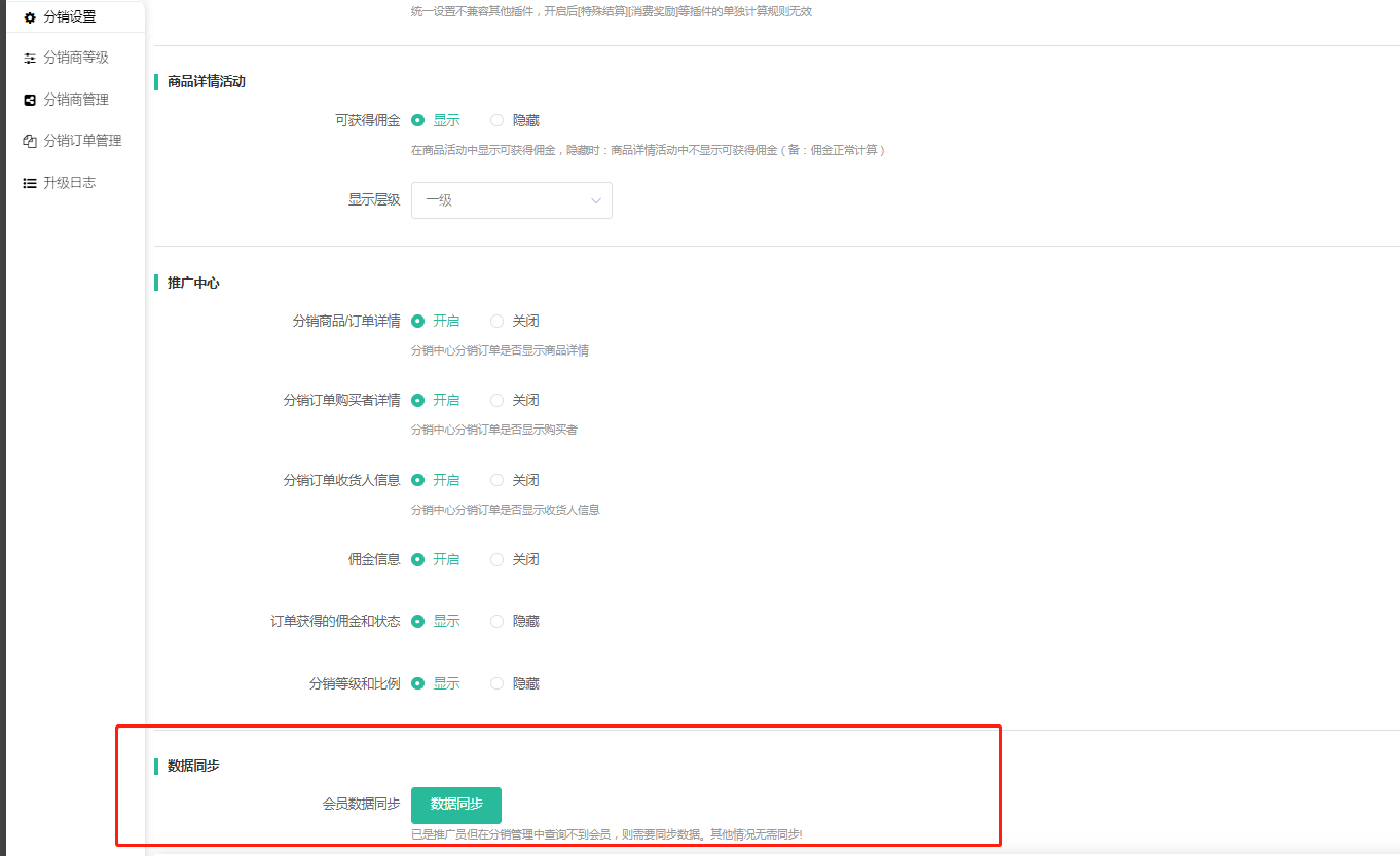 会员数据同步:已是推广员但在分销管理中查询不到会员,则需要同步数据。其他情况无需同步!