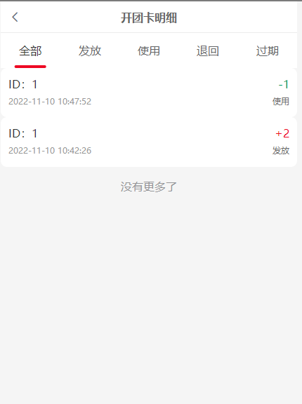 9, 开团卡明细:我的开团卡的变动明细,此处显示ID为开团卡的ID
