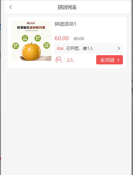 4, 开团列表:点击可查看该活动的开团列表